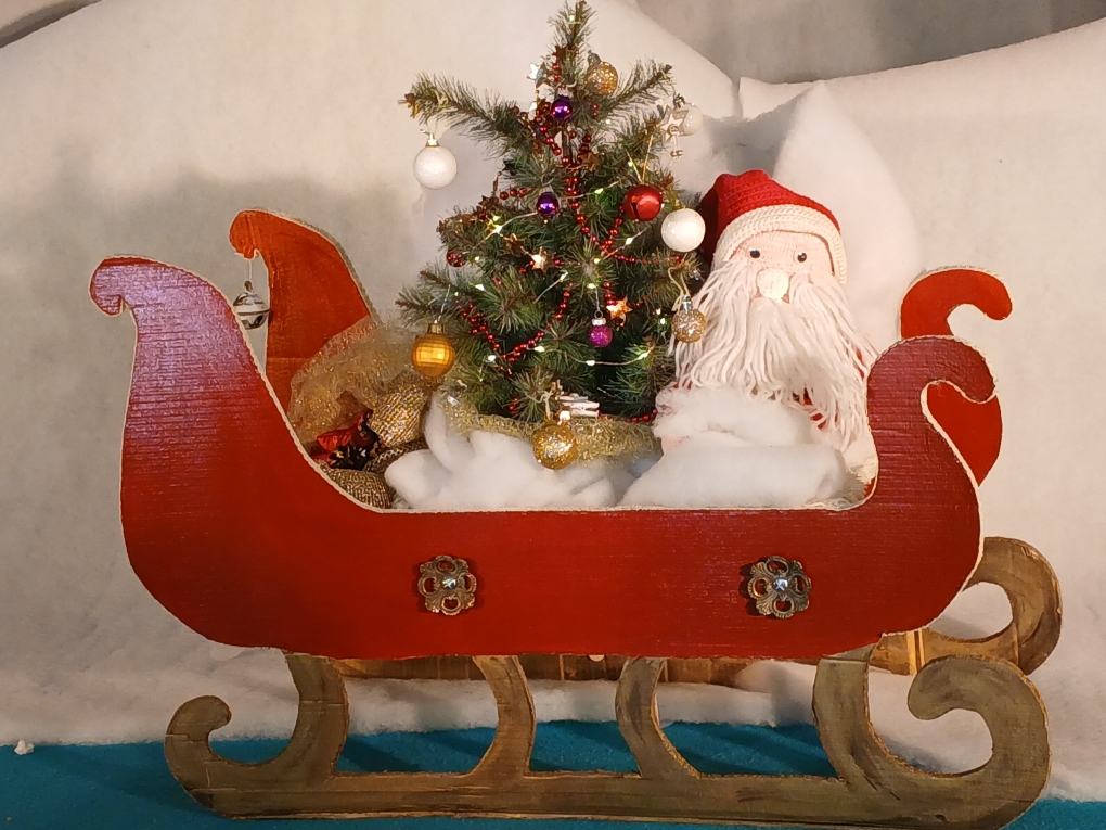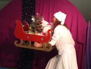 pendant que Le Père Noël lui arrive sur son traineau pour fêter Noël sur la terre