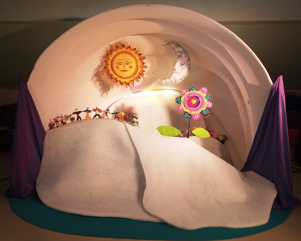 Décors fabriqués en résidence à l’école maternelle Les Gandins avec la participation des enfants et de l’équipe enseignante