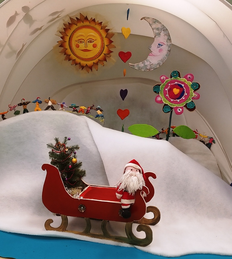 Décors fabriqués en résidence à l’école maternelle Les Gandins avec la participation des enfants et de l’équipe enseignante